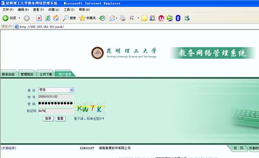 1、打开学校教务系统网站,登陆系统。如图1-1