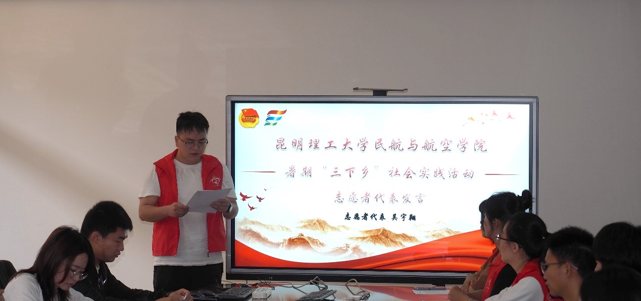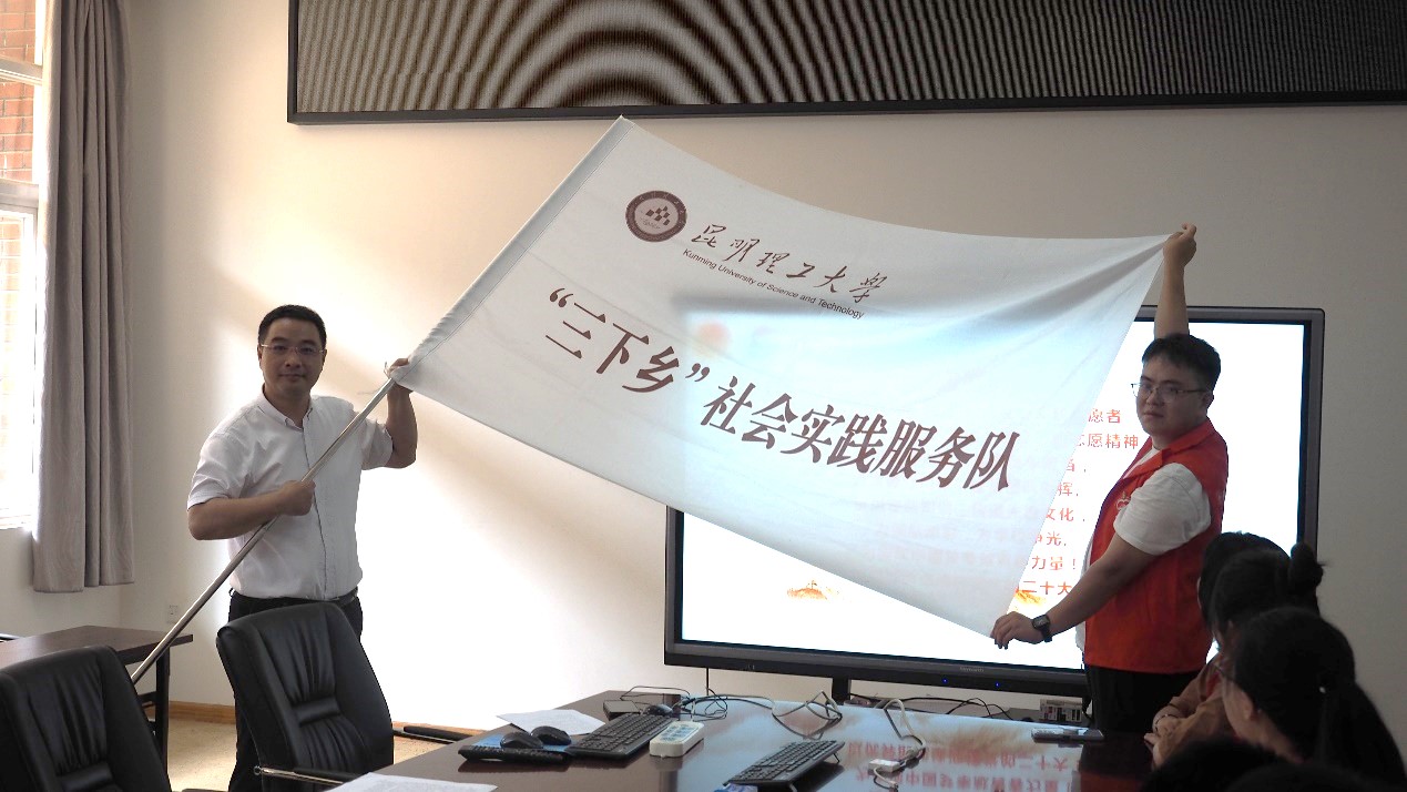出征仪式上,首先周业林副书记从正确认识“三下乡”、如何开展“三下乡”、认真感悟“三下乡”、安全与纪律四个方面进行动员,要求全体队员增强安全意识,把安全和疫情防控放在首要位置,鼓励队员积极发挥自身优势,结合专业特点将所学知识应用到社会实践中去,深入实地,扎根基层,学思践悟,增长才干,把实现个人理想与担当青春使命结合起来,坚定理想信念,践行初心使命,努力成为担当大任的时代新人。其次,实践团队队长吴宇翔作为代表进行发言,表示将听从安排,敢于吃苦,不怕困难,发扬“奉献、友爱、互助、进步”的志愿者精神,以实际行动展现昆工航院学子勇于实践、昂扬向上的精神风貌。最后,周业林副书记向实践团队代表授予三下乡社会实践服务队队旗,队长吴宇翔接过实践团队队旗,并带领全体队员激昂宣誓。