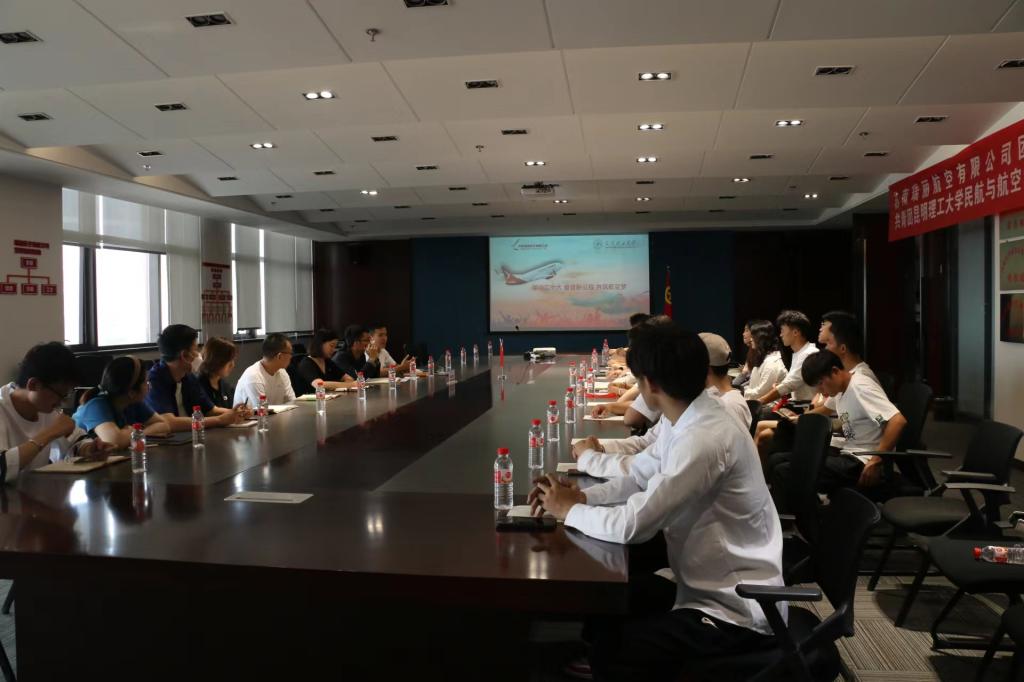 首先,苏南瑞丽航空有限公司飞机维修工程部党总支副书记林正兰和运行控制党支部副书记孟祥伟分别介绍了苏南瑞丽航空有限公司的基本情况,并回顾了苏南瑞丽航空有限公司与性吧 深厚友谊和共建关系,希望双方青年积极投身新时代民航主战场,练就过硬本领,树立民航强国伟大理想,将个人发展融入到国家民航事业发展中去,努力在新时代新征程中,创造属于新时代民航人的伟大成就,绽放出新时代青年人的伟大荣光,为实现中华民族伟大复兴奉献青春。随后,维修部主管苏玮向性吧 青年学生讲解了如何才能成为一名优秀机务工作者,作为镇守着飞行安全的第一道防线,需要机务工作者有扎实的检修技术、严谨的工作态度、实事求是、精益求精的优秀机务维修作风;运控中心副经理刘筱现场讲解了作为保证航空公司运行安全中枢的航空运行指挥中心(Airlines Operations Center,简称AOC)基本运行情况、特点、要求等,并带领学生现场参观感受了值班经理坐在大厅的中心位置,查看各类信息和监控指挥各个岗位,通过综合协调席、飞行签派席、气象席、导航数据席、配载平衡协调席、ATC协调席(空中交通管理协调)、航站现场协调席、机务维修席等多个席位,让性吧 交通运输专业学生真实体验未来工作环境。最后,双方青年代表畅谈本次联学共建活动的学习体会和心得感受。