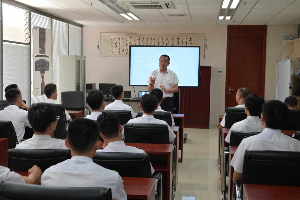 专题党课中,薛庆副书记首先从公司的“十字要求”入手,要求学员们在日常的学习生活乃至今后的工作中要认真贯彻落实“遵章、守纪、严谨、认真、精细”的工作作风。中国东方航空公司作为中国共产党领导下的新时代中央航空运输企业,飞行学员们更要不断强化政治理论学习,紧跟时代发展步伐,切实做到信念坚守、政治可靠、能力过硬、作风严谨、品德高尚,成为真正担得住工作责任重担、抗得起民航发展重责的一流民航飞行人才。最后,薛庆副书记希望飞行学员们都能像东航党建林石碑上刻的字一样:苦练精飞,雄鹰高翔,为中国的民航发展贡献出自己的力量。