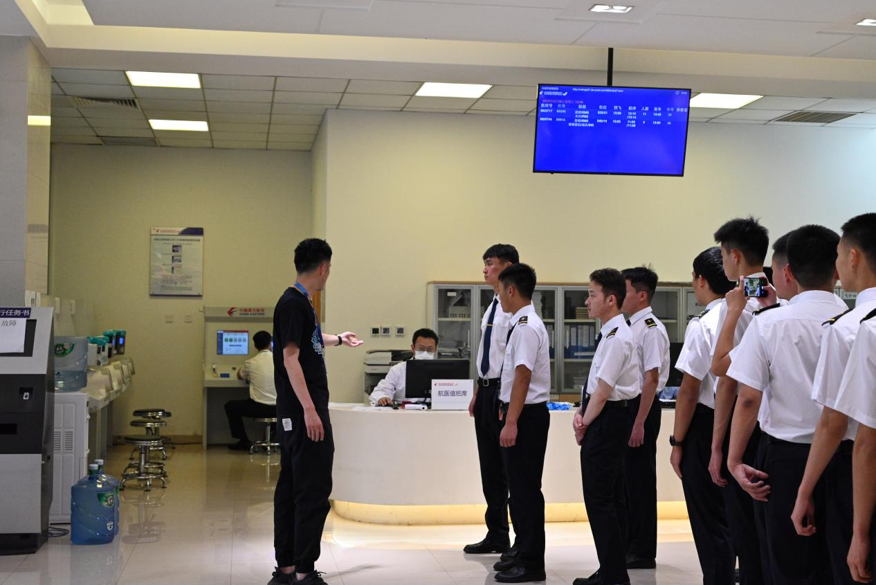 专题党课前,中国东方航空云南公司相关人员带领飞行学员们参观了健身房、空勤食堂、飞行员心理减压室等与飞行学员日后工作息息相关的设施场所。