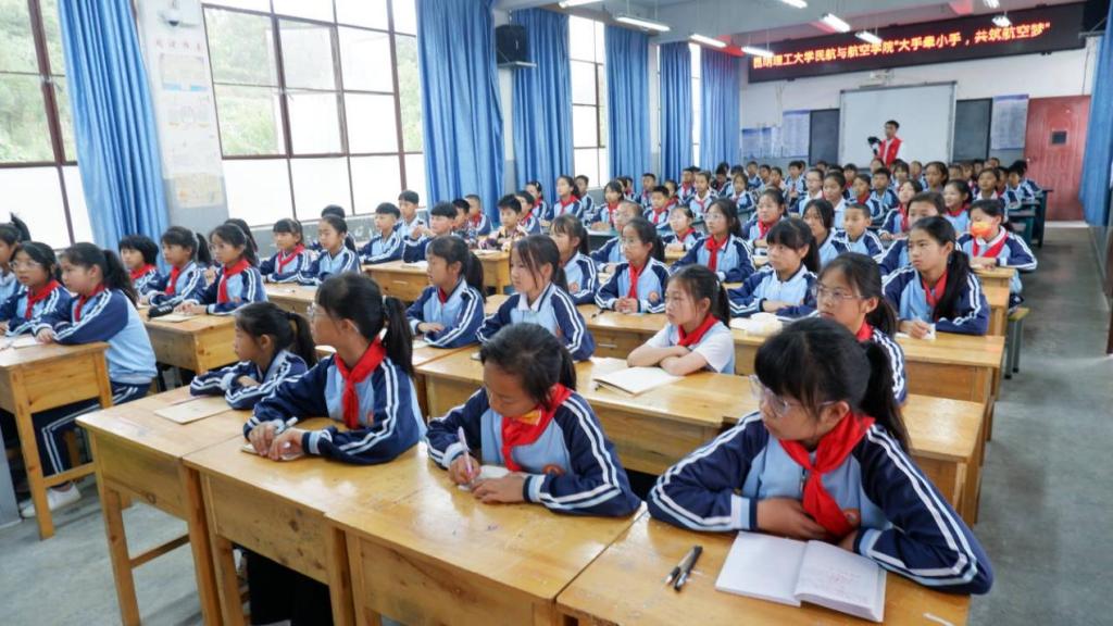 5月30日,神舟十六号载人飞船发射取得圆满成功,使人类同时在太空人数达到创纪录的17人,这是世界航天事业的成就,也是中国航天事业的成就。虽然人类进入太空仅有60多年历史,但是飞天却是人类自古以来就拥有的梦想。长久以来,浩渺长天便以独特的魅力吸引着人们对其进行无尽的想象,实现飞天梦是中国人自古以来不懈追求的夙愿,这需要一批又一批有志青年前赴后继。在等他们奔赴航空事业之前,青少年的航空科普教育就显得尤为重要。7月3日性吧 联合马克思主义学院赴保山市与共青团施甸县委共同组织开展以“大手牵小手,共筑航空梦”为主题的航空知识宣讲活动,分别来到了保山市施甸县姚关镇中心小学、蒜园小学。活动以传播航空知识、弘扬航空精神为主线,大学生和小学生一起做航空游戏、体验模拟飞行的快乐。
