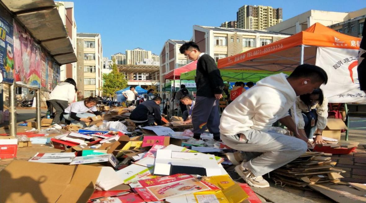 活动开展前,工作人员各司其职,为活动开展作出了充分的准备。活动采用现场回收废旧书籍、纸箱和塑料瓶来兑换纪念品的方式,让同学们参与到环保活动中来。同时,活动还倡议参与人员利用废纸盒制作特色创意作品,让废弃物品再次得以利用,用手工展现自己的环保行动。活动后,回收的所有物品兑换成礼品捐出,让同学们间接性地参与到了志愿公益活动中,通过自己力所能及的行动奉献了爱心。