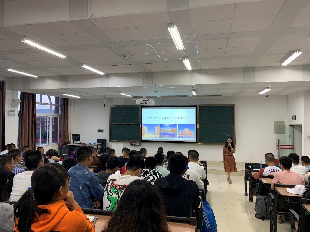 讲座开始,胡老师通过系列图片将学生眼中的大学和现实中的大学作对比,以聊天的方式引发学生思考初入大学的迷茫和困惑,引导学生正确认知。随后,结合自身工作经验及实例,从心理学视角深度解析大学生活,对常见的心理学误区、大学新生活适应中常见的心理问题以及如何实现适应期心理转变等方面进行了深入的阐述,为同学们快速适应大学生活提出了针对性的建议。最后,胡老师鼓励同学们正确认识心理问题,详细讲解了出现心理困扰时自我调适、积极求助的方法和途径。