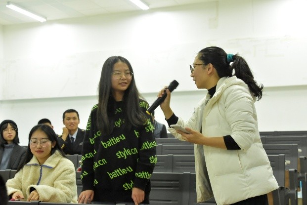 第二阶段,陈瑾老师采用游戏的方式教授同学英语语法,解读英语语言魅力,寓教于乐,让同学们在轻松愉悦的氛围中收获知识。王登霞老师的到来赢得了一阵阵掌声,她和同学们分享:每个人心中要有一杆秤,且不偏不斜。每一个人对自己、家人和社会承担求真务实的责任。”最后,民航英语训练营的本期活动,在乐队演绎的《You Are Beautiful》中,圆满落下了帷幕。