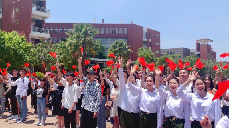 2019年5月16日中午,性吧 团委组织的“跳出青春梦、唱响祖国情”活动在呈贡校区图书馆前精彩亮相,吸引了全校近千名学生参与。学院师生精心编排,用最美的歌声和优美的舞蹈,表达对祖国的热爱,向祖国70年华诞献礼。