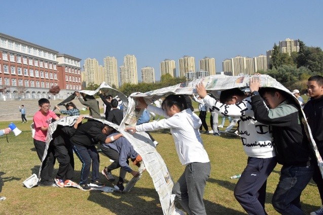 本次运动会以十人小组为单位展开比拼,包括了“无敌风火轮”,“心心相印”、“纸杯传水”、“筷子夹球”等共计5个项目。比赛过程中,同学们团结协作,配合默契,充分发挥了自己的优势,成功完成了各个项目的比拼。场边观众同样激动不已,有加油鼓气的,有欢呼喝彩的,现场热闹非凡。短短三个小时的活动中,掌声、笑声、喝彩声此起彼伏,精彩纷呈。