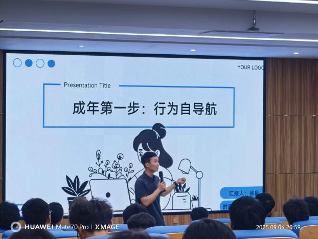 2025年9月4日19:00,性吧 党委书记朱兴东、学工办主任徐良带领2025级新生开展入学教育,为新生大学生活奠定思想基础和理想信念。本次入学教育在公教楼344报告厅进行,主题为“思想引导与行为规范”,全体2025级新生参加了活动。