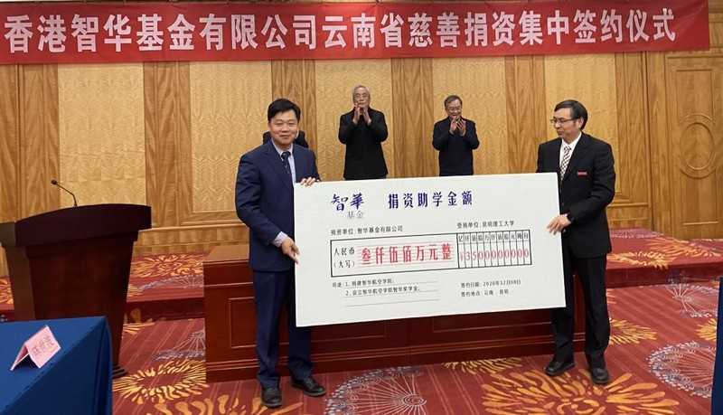 2020年香港智华基金慈善行动首次进入云南,在此次捐赠协议签约仪式上,智华基金与西南林业大学和省内6所中学代表也签署了捐赠协议,捐资总额达9700万元人民币。