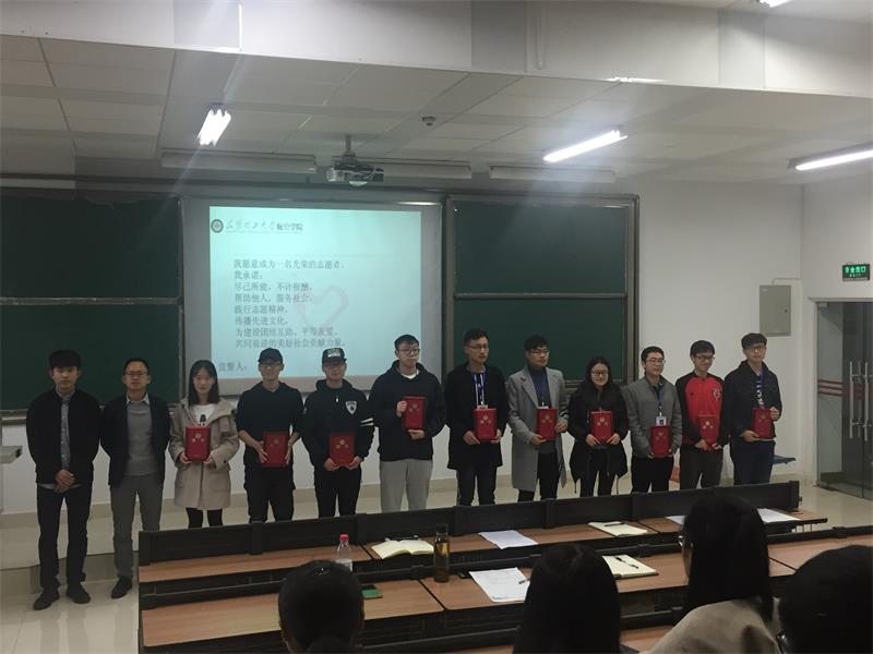 随着志愿者之歌的响起大会正式开始,杨晶晶老师向同学们介绍了青年志愿者工作的重要意义,他希望大家勇于担当,敢于奉献,在保证学习的同时多做一些有意义的活动,成为一个品学兼优的大学生。同时,以“奉献、友爱、互助、进步”为志愿服务精神,在学院团委的领导下开展一系列高品位、深内涵的志愿服务工作,积极宣传志愿者精神,增强院内志愿者的感召力。最后,老师向各位青协干部颁发了聘书。