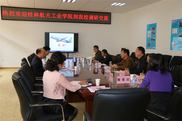 桂林航天工业学院党委李书记在听完工作汇报后表示:昆工能在短短的88天内将航空学院筹建挂牌实现招生,并初步形成一套学院建设发展规划实属不易,这样的拼搏精神值得敬佩;云南航空教育史很长、很辉煌,昆工目前具有支撑航空专业建设发展的相关学科,并且起点都非常高,航空学院今年实现招生的四个本科专业都与航空领域有关,专业定位准确,为云南大航空教育领域的发展打下了坚实的基础,相信航空学院将来的发展空间和潜能会非常巨大。李书记在介绍桂林航天工业学院办学历史过程中表示:桂航办学历史已有37年,原属于航天部管理,现划归地方管理,主要定位是面向地方、服务地方、培养学生应用能力和实践能力的应用型大学,广西省委省政府目前非常重视通用航空领域方面的产业发展与应用,希望今后要多与昆工航空学院加强合作与联系。