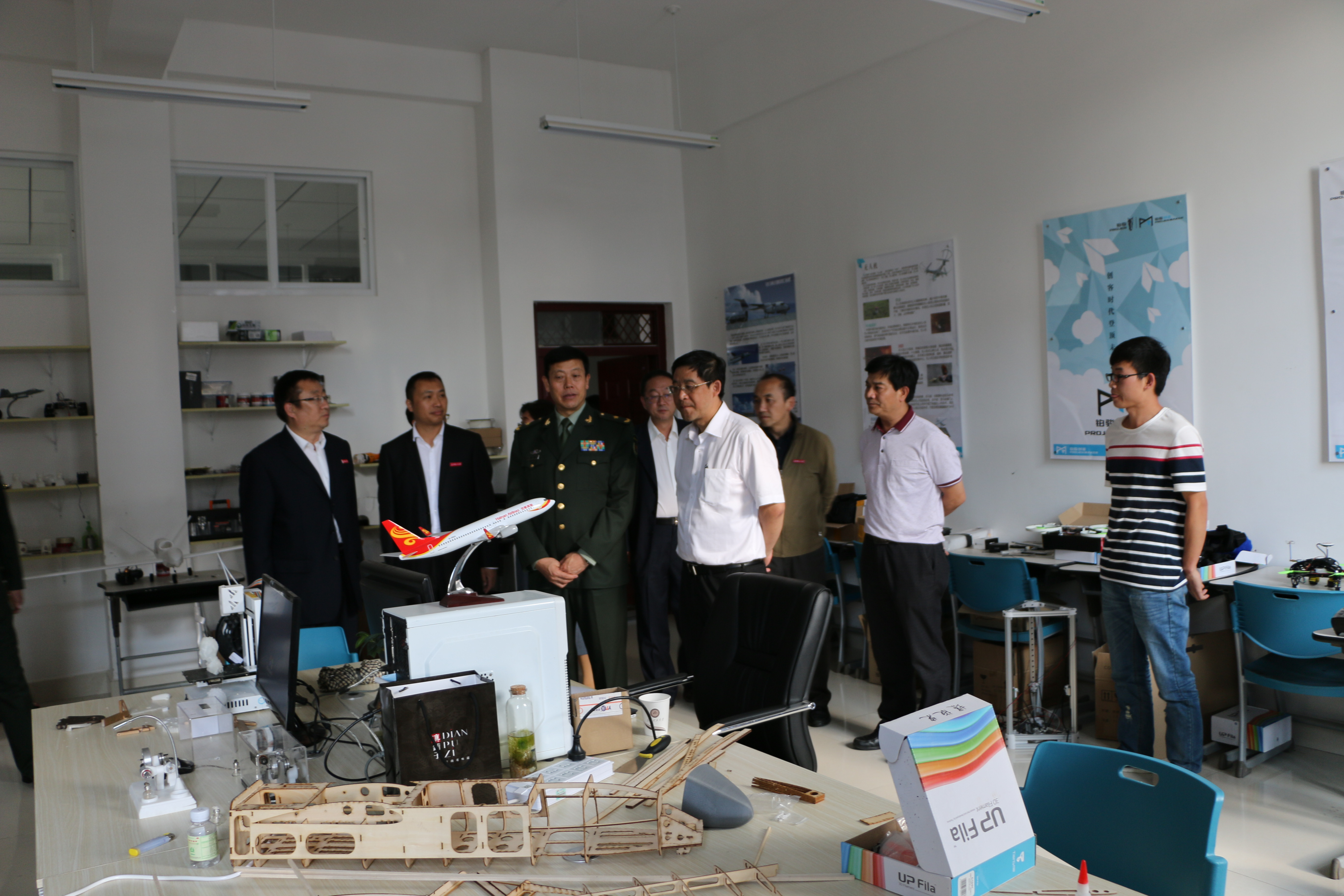 视察组一行参观了学院的航空文化长廊、云南航空教育发展史陈列馆、“飞虎队”云南抗战展厅、模拟飞行实验室和铂骏创客工作室(无人机研发中心)。视察过程中,彭金辉校长向杨司令员汇报了航空学院2016年的招生和专业设置情况;学院党委副书记赵耕、副院长刘增力向杨司令员汇报了学院建设发展、云南航空教育发展史等方面的情况。