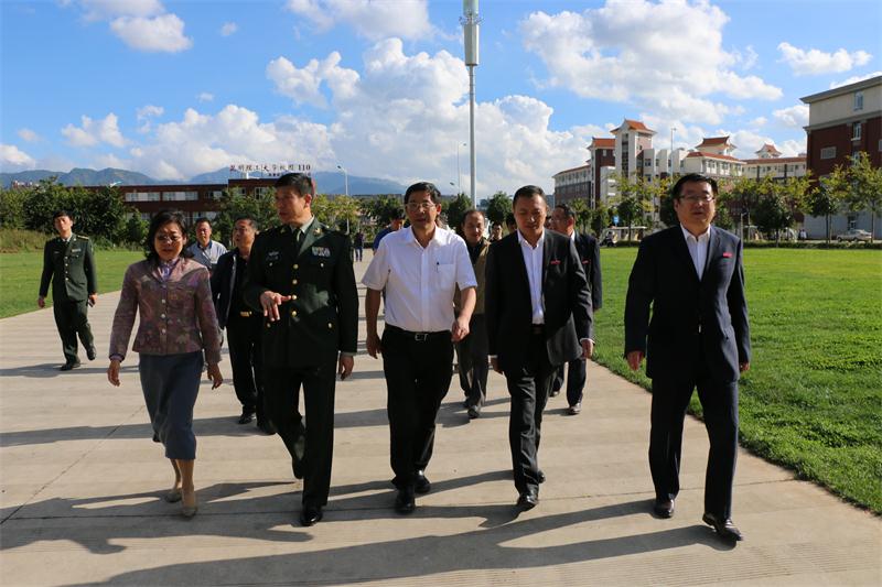 校党委副书记李莉、副校长牛治亮、校纪委书记陶光荣、副校长周峰越以及党办、校办、宣传部、学生处(武装部)等主要负责人陪同视察参观。