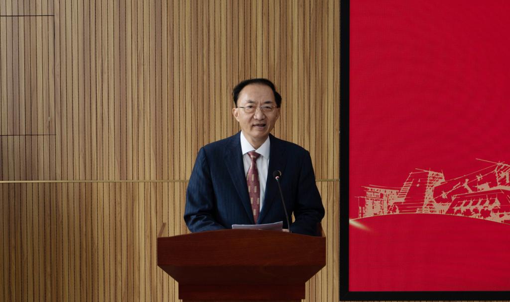 仪式结束后,林高演一行与唐家华,学校党委副书记蔡金红,潘学军,学校相关部门和学院负责人座谈交流。