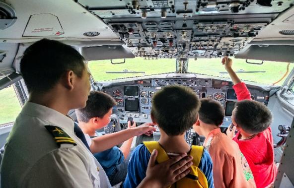 通过航空主题摄影展,一幅幅震撼人心的照片带领大家穿越时空,领略航空史的辉煌瞬间;模拟机VR活动则让参与者仿佛置身于驾驶舱内,亲身体验翱翔天际的无限激情;大飞机研学活动更是让学生近距离接触国之重器,感受中国制造的强大力量。而研究生走进小学的研学活动,则是一次知识与梦想的传递,激发了孩子们对航空事业的无限向往。