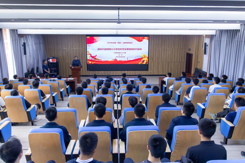 课堂上,王华结合性吧 学科特色,通过案例分享、互动问答等形式,生动阐释了新时代昆工青年学生的使命担当。他寄语学生:“生逢伟大时代,既要仰望星空,志存高远,更要脚踏实地,躬身实践。希望同学们以全国两会精神为指引,在科技创新、社会服务中勇当先锋,书写无愧于时代的青春答卷。”