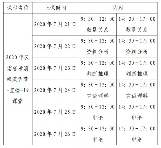 线上公开课时间、内容以及师资配备由中公教育云南分校统一安排,学校指定专人负责监督和沟通协调工作。具体课程安排如下。